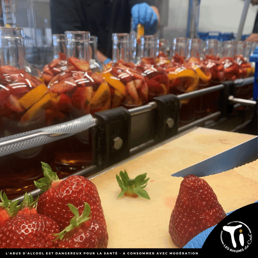 Afin de proposer une macération aussi appétante visuellement qu’en dégustation, Ced’ décide de travailler en amont la cannelle et les citrons verts en infusion… « En créant la Ti Gria, je ne me voyais pas intégrer 4 ingrédients dans nos flacons… Il fallait faire un choix et j’ai donc décidé de marier l’orange et la fraise dans la bouteille« . Chaque année au mois d’avril, l’atelier artisanal des Rhums de Ced’ propose une nouvelle recette saisonnière à base de fraises locales… L’occasion de collaborer avec leurs voisins artisans producteurs de La Fraiseraie à Pornic.