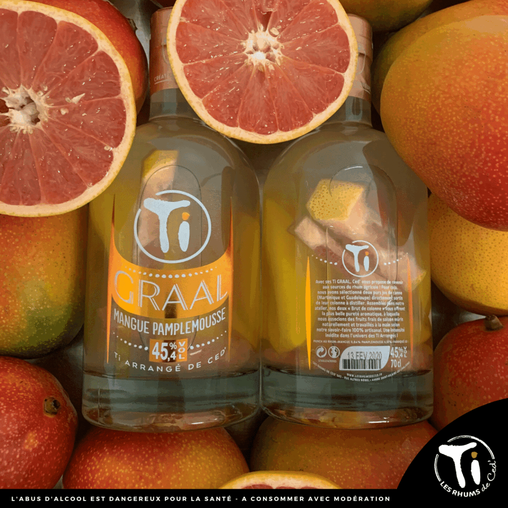 Dernière nouveauté de la saison Printemps Eté 2020, la recette Ti Ced’ Mangue Pamplemousse vient compléter la gamme arrangée « premium » des GRAAL imaginée par Cédric Brément ! L’année dernière, Ced’ avait lancé avec succès ce nouveau standard de dégustation dans la palette aromatique de ses Ti Ced’ (degré d’alcool plus élevé : 45.4% vol.) ! « Je souhaitais proposer une recette encore plus technique dédiée aux amateurs de rhum agricole. En présentant nos deux premières recettes, Citron Passion et Ananas Framboise, à l’occasion du Rhum Fest 2019, l’accueil des avertis du pur jus de canne a dépassé mes attentes… » avoue Ced’.