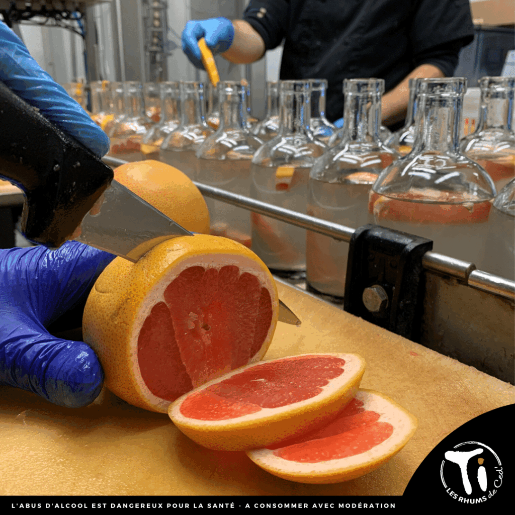La recette particulière de ces punch au rhum « GRAAL » tient au subtil mariage de fruits frais de saison, récoltés à maturité naturelle, avec un Blend maison de rhums agricoles AOC Martinique & Guadeloupe non réduits (dits « Brut de colonne »). « Lorsque j’ai contacté nos partenaires producteurs de rhum agricole en Martinique et en Guadeloupe, je souhaitais obtenir de leur part leur jus de canne le plus pur possible… Ils m’ont donc envoyé leur base de rhum directement prélevée à la sortie de leur colonne de distillation avec un degré d’alcool très élevé. Aucune réduction n’a ainsi été réalisée à la sortie de la colonne de distillation. » A réception des purs jus de canne, Ced’ réalise alors son Blend maison dans lequel il vient intégrer un sirop de sucre de canne maison et des fruits frais travaillés le jour de leur réception. Le degré final de la macération atteint les 45.4% vol.
