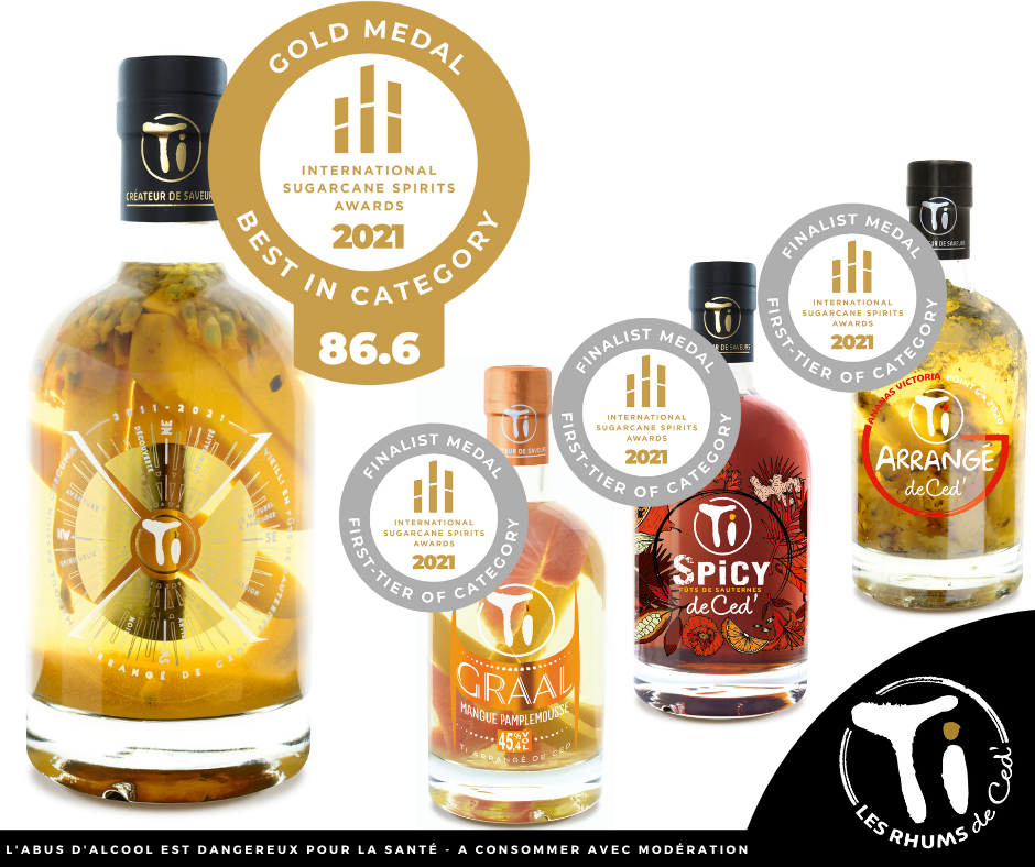 L’atelier des Rhums de Ced’ est honoré de se voir décerner la seule et unique médaille d’Or de la catégorie Rhum Arrangé pour sa recette Ti Arrangés de Ced’ Mangue Passion Curcuma (pur jus de canne de Martinique vieilli 2 ans en fûts de Sauternes). Une nouvelle d’autant plus exceptionnelle que notre macération artisanale décroche le score record de 86.6 points, la plaçant dans le TOP 10 des meilleurs rhums du monde, toutes catégories confondues !!!